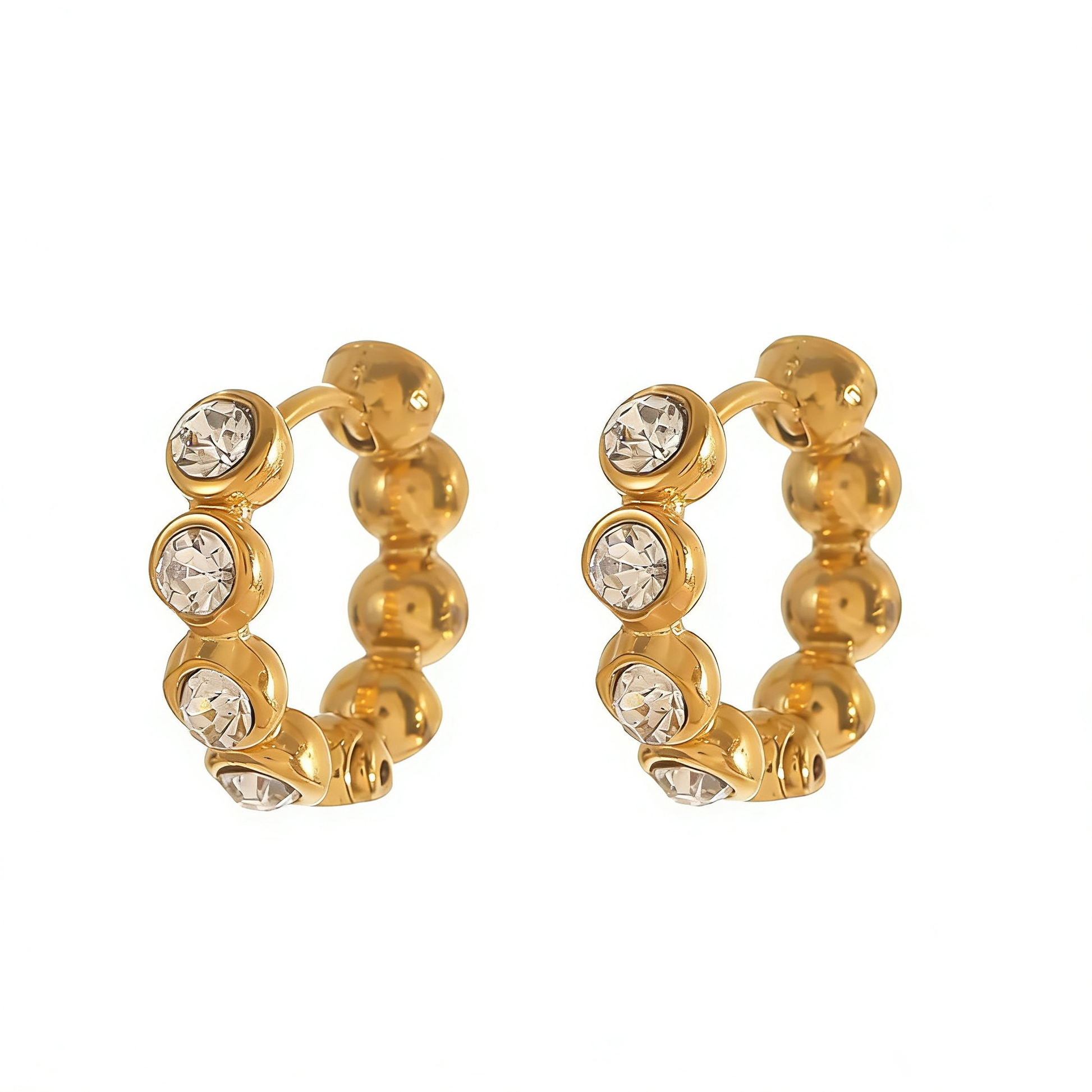Beaded Cz Hoop Earrings Water Resistant